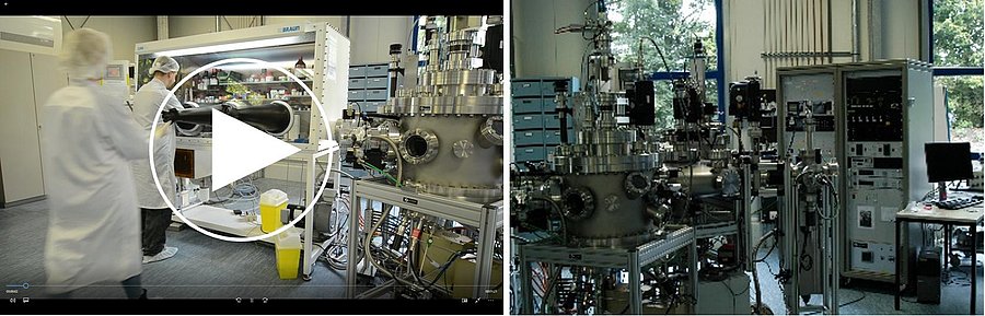 • 650m2 lab space (230m2 under controlled particle levels) • Organic and metal evaporation cluster system, sputter deposition (Al:ZnO, ITO, ZnSnO) • ALD coating system (BENEQ-TFS200), home-built MLD system • Glove box systems (Braun) with integrated spin coater, attached to evaporator • Perovskite thin film technology (solution or thermal evaporation) • Setup for the growth of perovskite single crystals • Seeded solution based growth of thick perovskite layers with a thickness >100µm. • Charge injecting/extracting electrodes including interfacial layers to match the electronic alignment. • Study of electrode selectivity and blocking behavior • Permeation barrier technology, Atomic Layer Deposition • Optical emission spectroscopy with a wide range of continuous and pulsed excitation lasers from the UV to the visible spectral range. • Optical absorption/transmission spectroscopy (UV-VIS) • Optical gain spectroscopy, waveguide absorption spectroscopy • Scanning Kelvin Probe, scanning calorimetry • Spectral Ellipsometry (Woollam, UV-IR) • Atomic Force Microscopy (Bruker) • Electrical characterization (I/V, C/V, mobility, etc.) • high-resolution electron microscopopy with X-ray fluorescence spectroscopy (EDX) • various scanning probe microscopy techniques (C-AFM, Scanning thermal microscopy). • dynamic electron beam induced current (EBIC) investigations in the frequency domain) • …